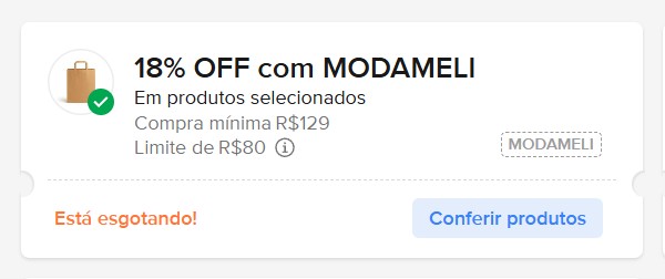 Se for um erro de parametrização (“bug”), o Mercado Livre pode restringir o cupom a qualquer momento. Para garantir os 18% em produtos de outras categorias, faça o seguinte: