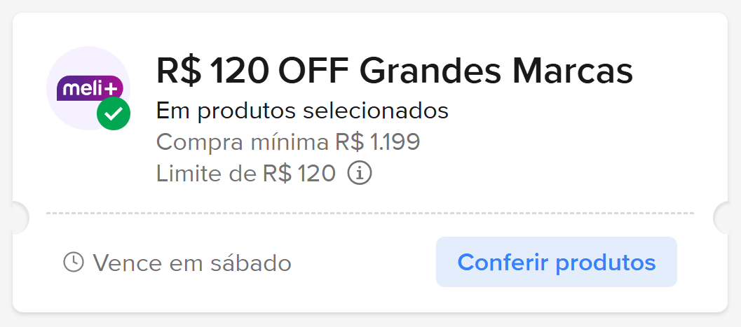 O Mercado Livre iniciou o Festival de Grandes Marcas com um cupom que garante R$120 OFF em produtos selecionados dentro da campanha. A ação envolve diversas marcas populares e categorias como eletrônicos, eletrodomésticos, casa, informática e acessórios, criando boas oportunidades para economizar em compras mais robustas.