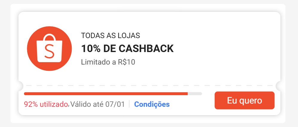 Só hoje! Ganhe R$ 10% de Cashback em compras com cupom Shopee