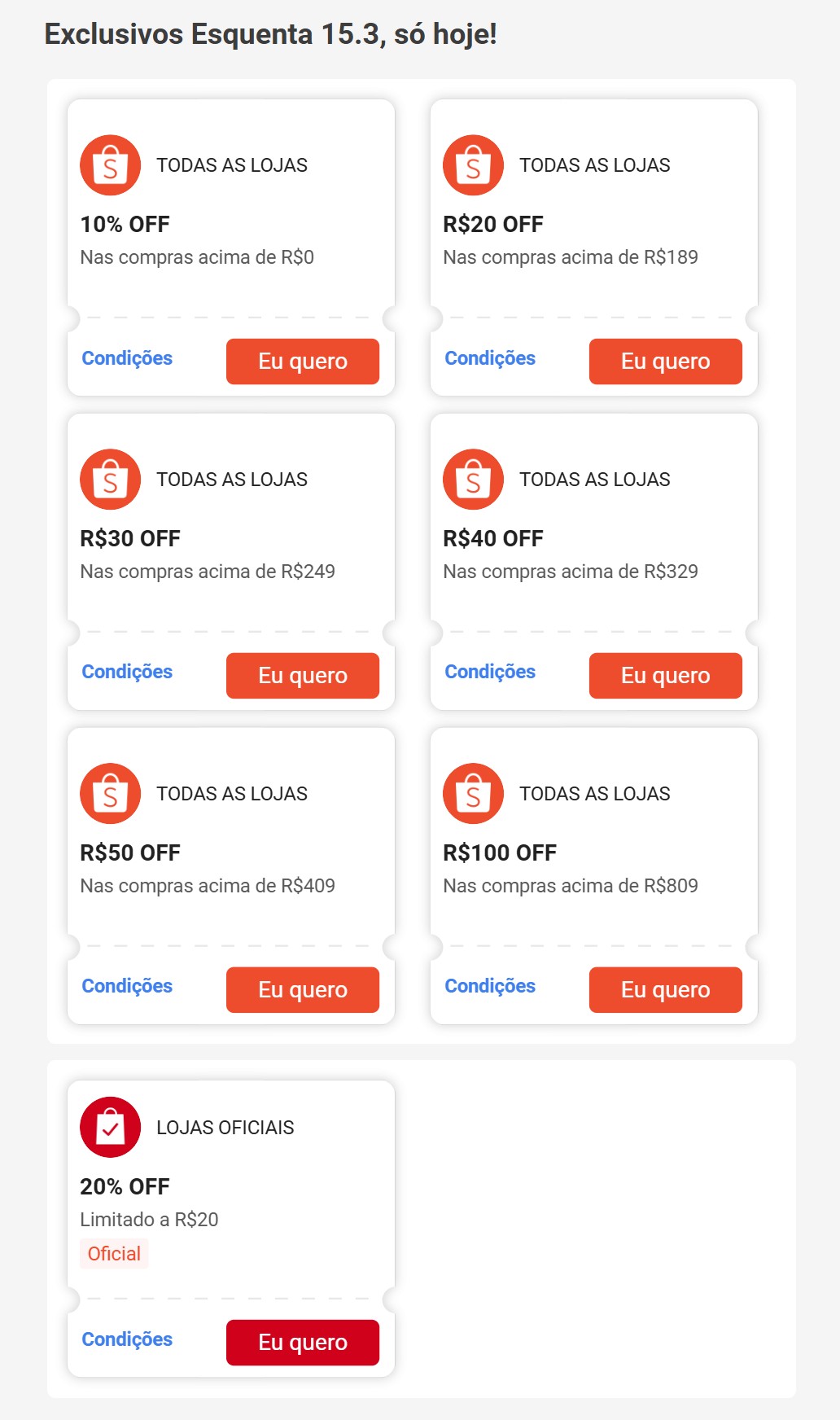 Todos Cupons 15.3 dia do Consumidor 2026 da Shopee liberados até agora – Resgate Antes que Acabe
