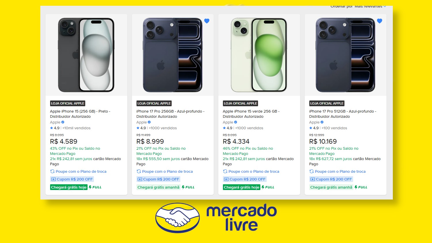Bom é Pouco: iPhones estão com R$200 OFF no Mercado Livre com Cupom que Está Esgotando