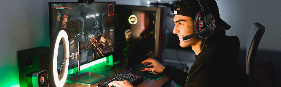 O design over the ear proporciona graves com qualidade superior. Os arcos telescópicos acolchoados oferecem maior conforto e melhor ajuste do usuário. O acabamento em espuma de alta qualidade e couro sintético proporciona máximo conforto e durabilidade. As conchas especialmente desenhadas reduzem os ruídos externos para uma experiência ainda mais imersiva.